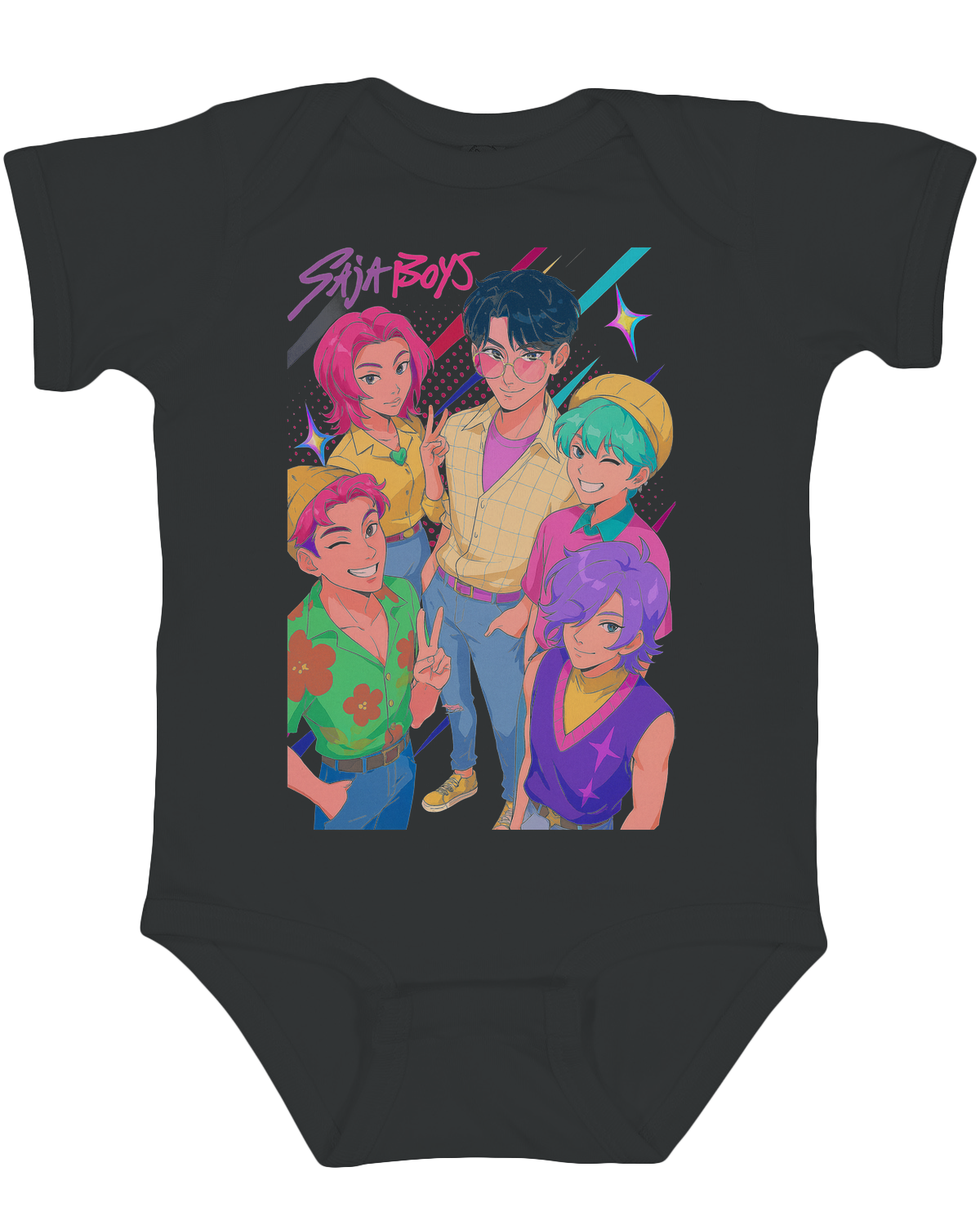 The high-contrast KPop Demon Hunters graphic is specially designed with black and white elements to captivate developing vision, while the integrated sensory elements make this more than just clothing – it's an early learning experience. The easy snap closures and envelope shoulders make dressing simple, while the machine-washable construction stands up to daily adventures. Perfect for developmental playtummy time, or creating musical moments with your future superfan.