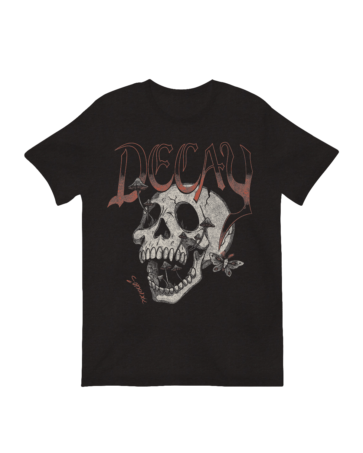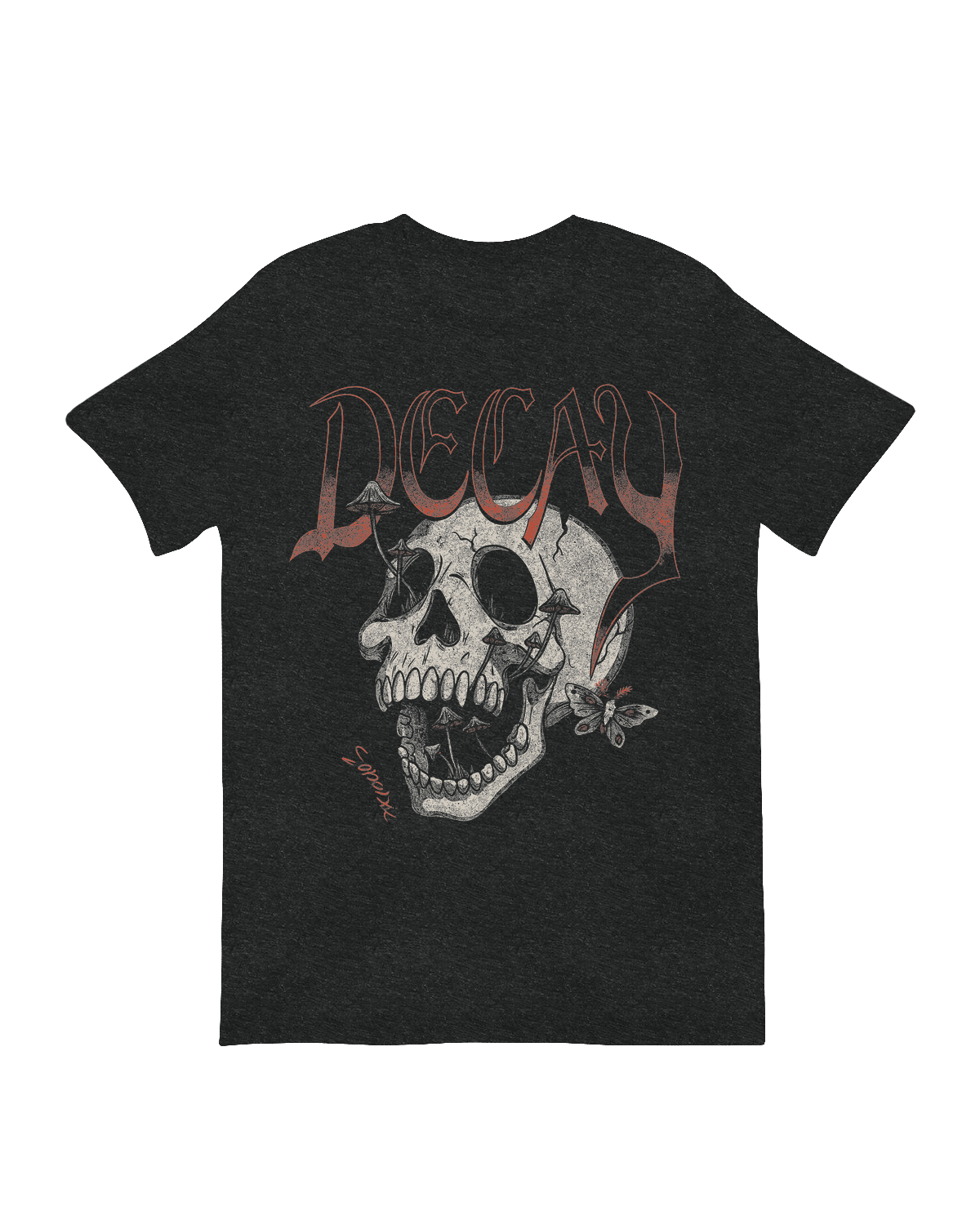 Decay Skull Mushrooms - Black Heather Triblend / S is backordered and will ship as soon as it is back in stock.