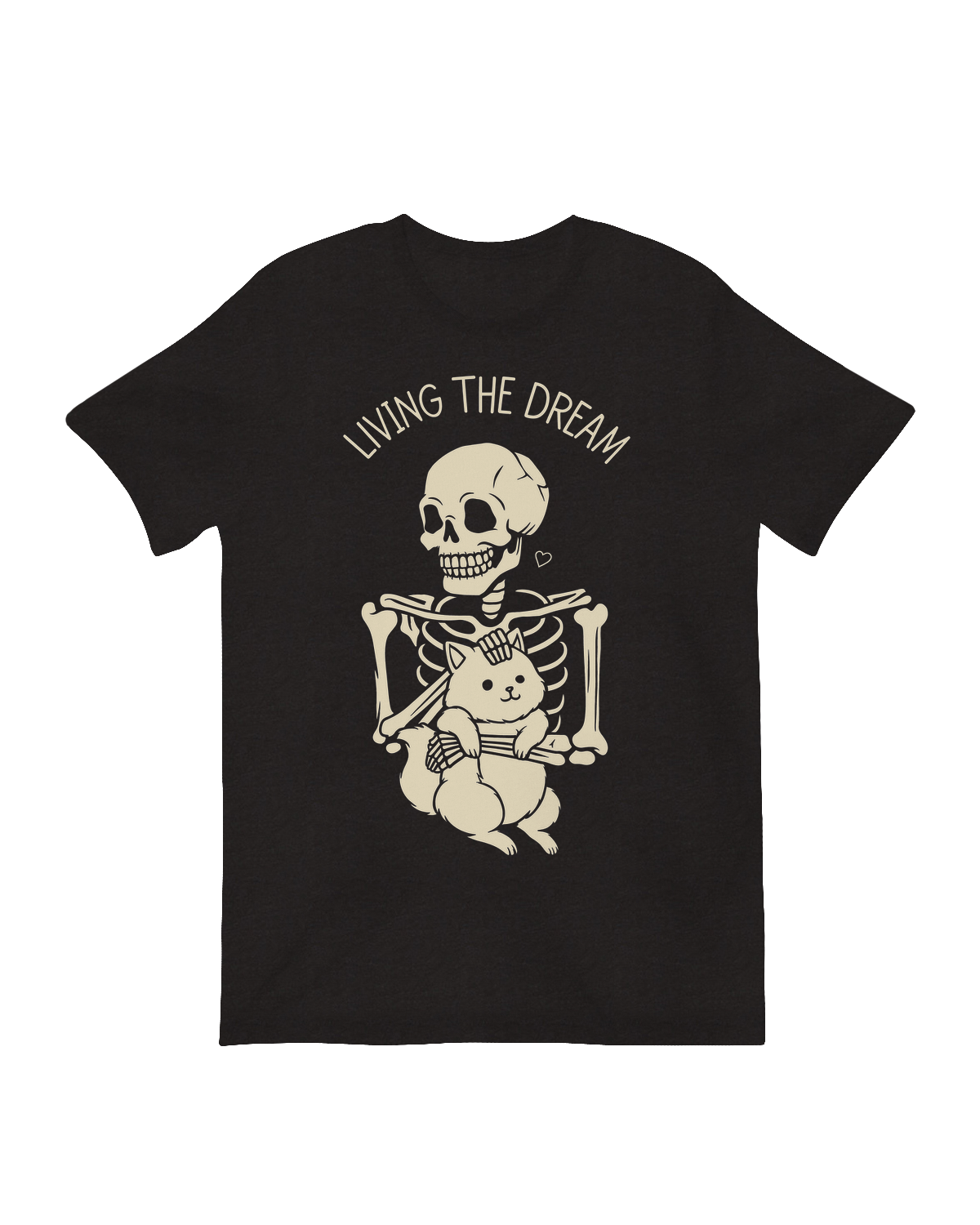 The nap never ends. Let this Living The Dream Skeleton Cat print celebrate the eternal relaxation every cat deserves.