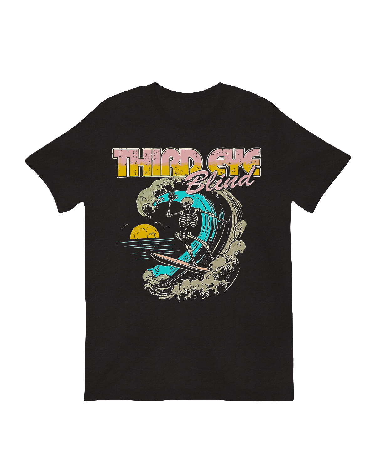 Expertly printed on premium, archival matte cardstock, this artwork blends sunny, coastal vibes with a touch of alternative rock edge. The dynamic skeleton surfer against a colorful wave creates a striking nostalgic music tribute that honors both the band's hits and the fleeting beauty of time. This print serves as the ultimate gift for Third Eye Blind fans, a vibrant addition to any music lover's space, or a spirited piece of 90s alternative decor for those who forever ride the wave of nostalgia. It's perfect for enthusiasts of 90s memorabiliasummer anthems, and iconic rock collectibles.